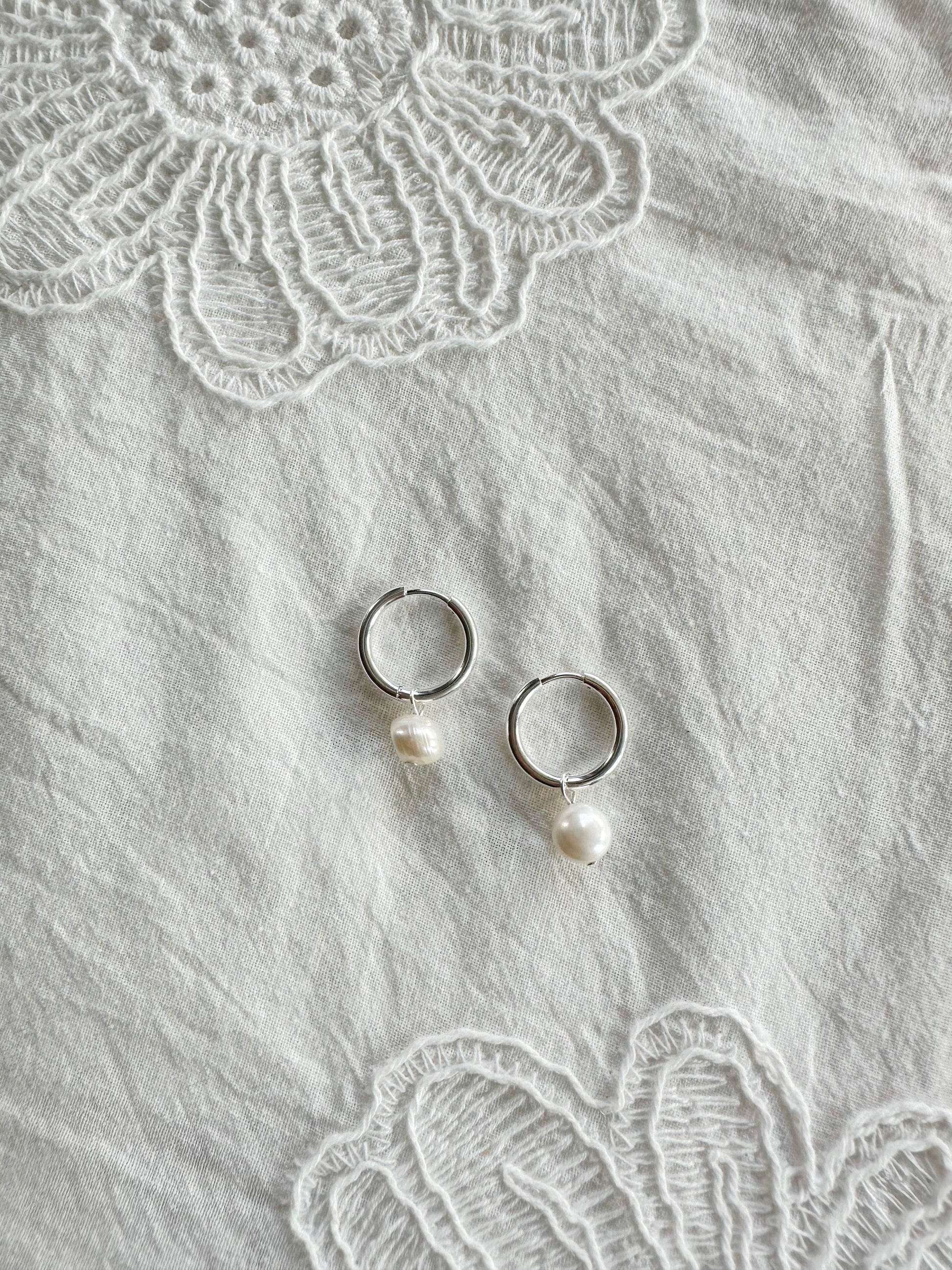 Silver stainless steel 16mm hoop with 7-8 mm freshwater pearl.